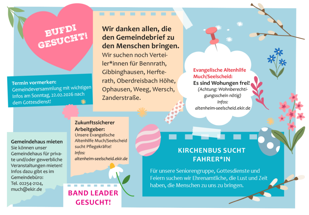 Wir suchen noch nach Verteilern für unseren Gemeindebrief, vor